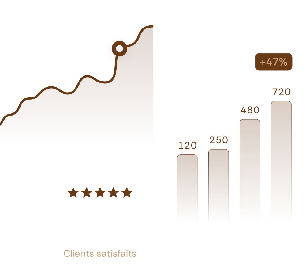 Nous nous concentrons sur des résultats concrets : plus de visibilité, génération de leads qualifiés et augmentation de votre chiffre d’affaires, avec des indicateurs mesurables.